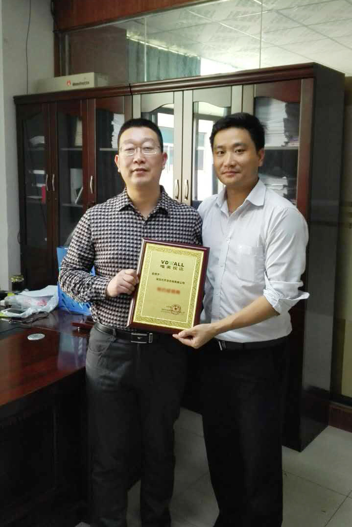 天合光電銷售總監(jiān)李防震先生和唯奧視訊營銷總監(jiān)文明楊先生合影