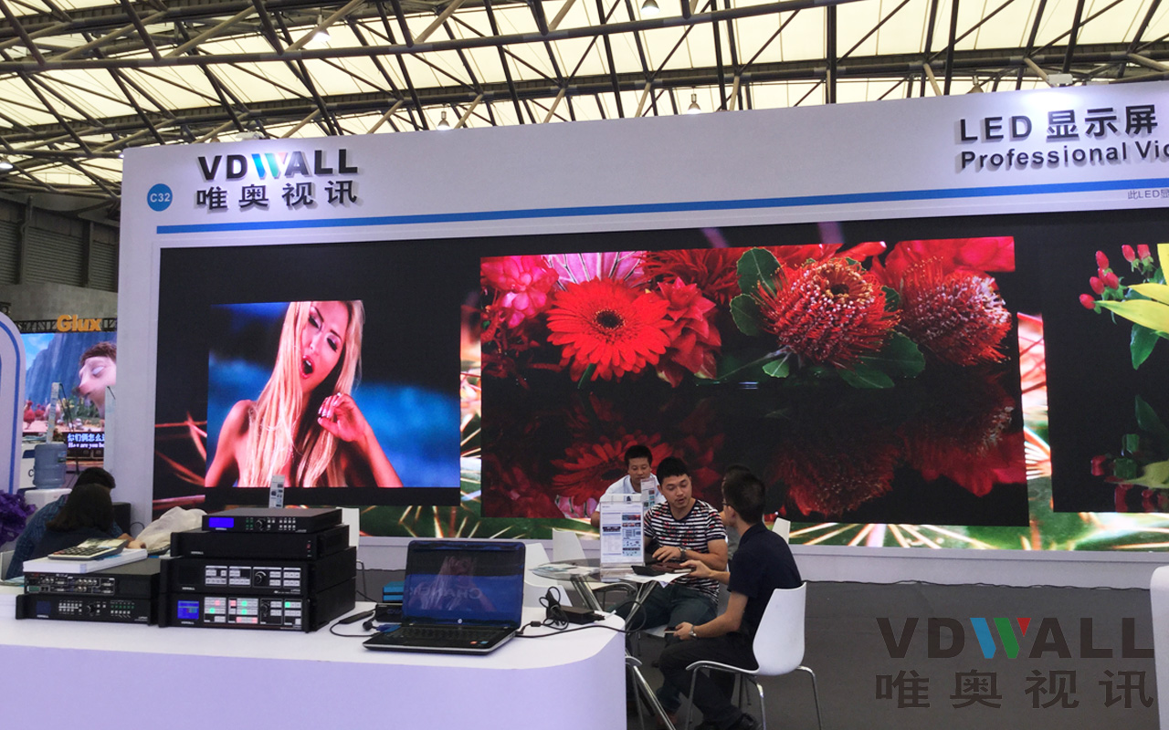 為了配合重磅推出的業內首款專業4K處理器LVP608,唯奧視訊的展示墻配置了長12米、高3米的4K LED顯示屏,由麗晶光電友情贊助144個P3.91的箱體搭建而成,這也是展館內最大的顯示屏之一。當屏幕亮起,超高清的畫面質感,精致的細節,絢麗的色彩和震撼的場景展現得淋漓盡致,過往客商無不駐足觀賞、拍照。在小間距、異形屏、3D顯示屏林立、視覺交互體驗十足的浦東新國際展覽中心,4K屏幕低調的華麗,為唯奧視訊賺足了眼球。