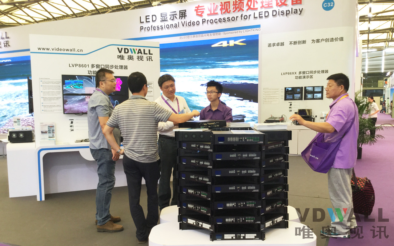 LED顯示屏一直在顯示系統中擔任主角,但上海展不只是一場LED顯示屏爭奇斗艷的盛會,周邊設備也從來都不是配角!向來隱藏大屏后方的LED視頻處理器實際是顯示系統的核心設備,融合切換、無縫拼接、多畫面顯示……操控著顯示屏的萬千變換。為方便客戶操作調試,唯奧視訊將操作臺設置在展臺最前方,視頻處理器終于強勢逆襲從幕后走到臺前。.jpg)