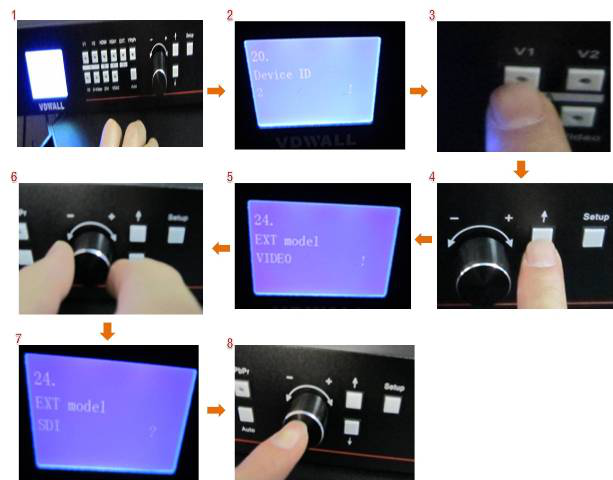 5-6-7.在菜單24項的時候旋轉旋鈕直至出現“EXT model SDI”(DVI模塊則是“EXT model DVI”)