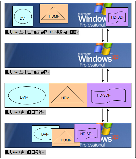 LED大屏可開3路任意尺寸的窗口畫面,且可任意漫游、疊加和平鋪