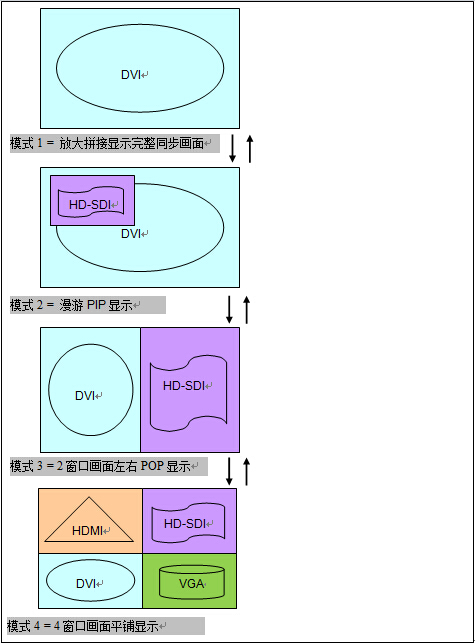各輸入信號間無縫/淡入淡出切換,同時4畫面預監(jiān)