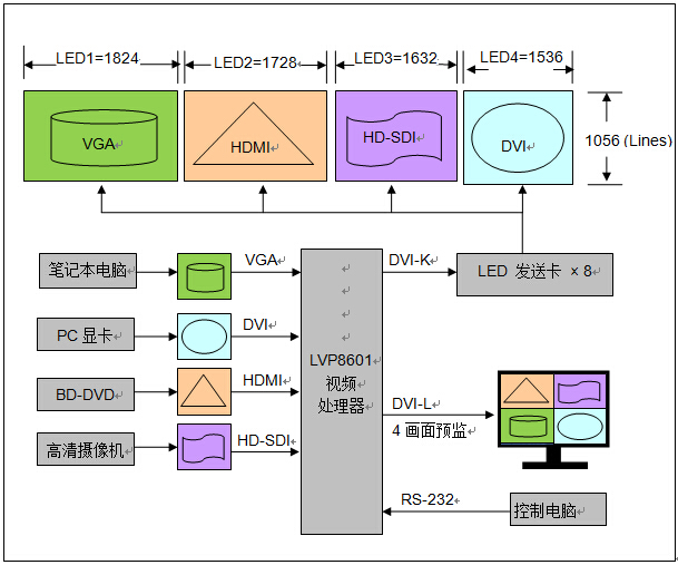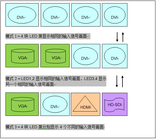 大型舞臺演出、大型會議、大型商業中心等多塊LED顯示屏場合