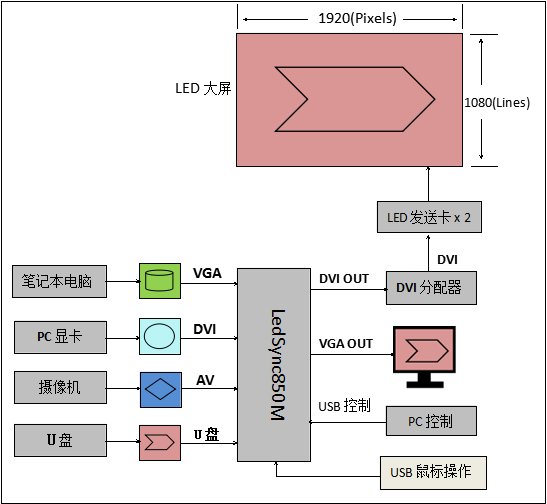 LED大屏根據現場需要分別顯示電腦、攝像機或者U盤里面的視頻圖片文件。